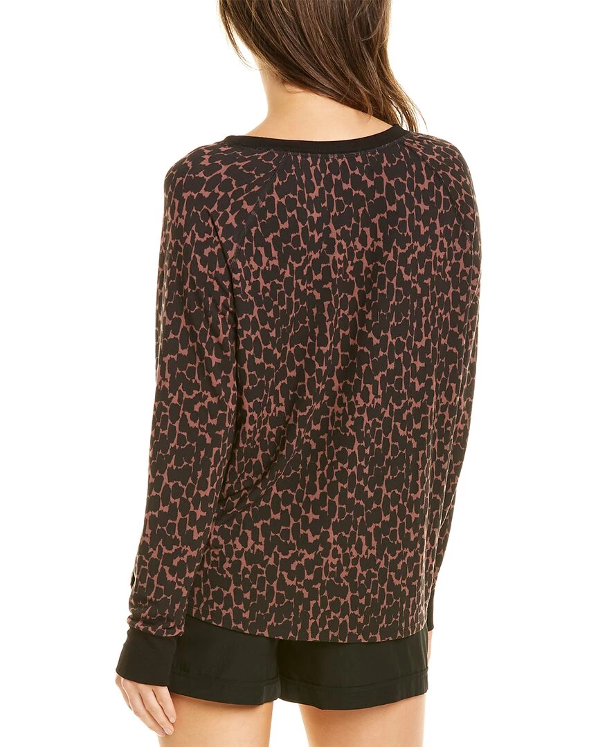 - Crewneck Sleep Top In Black Print With Raglan Sleeve, Side Vents At Hem, And Ribbed Trim
