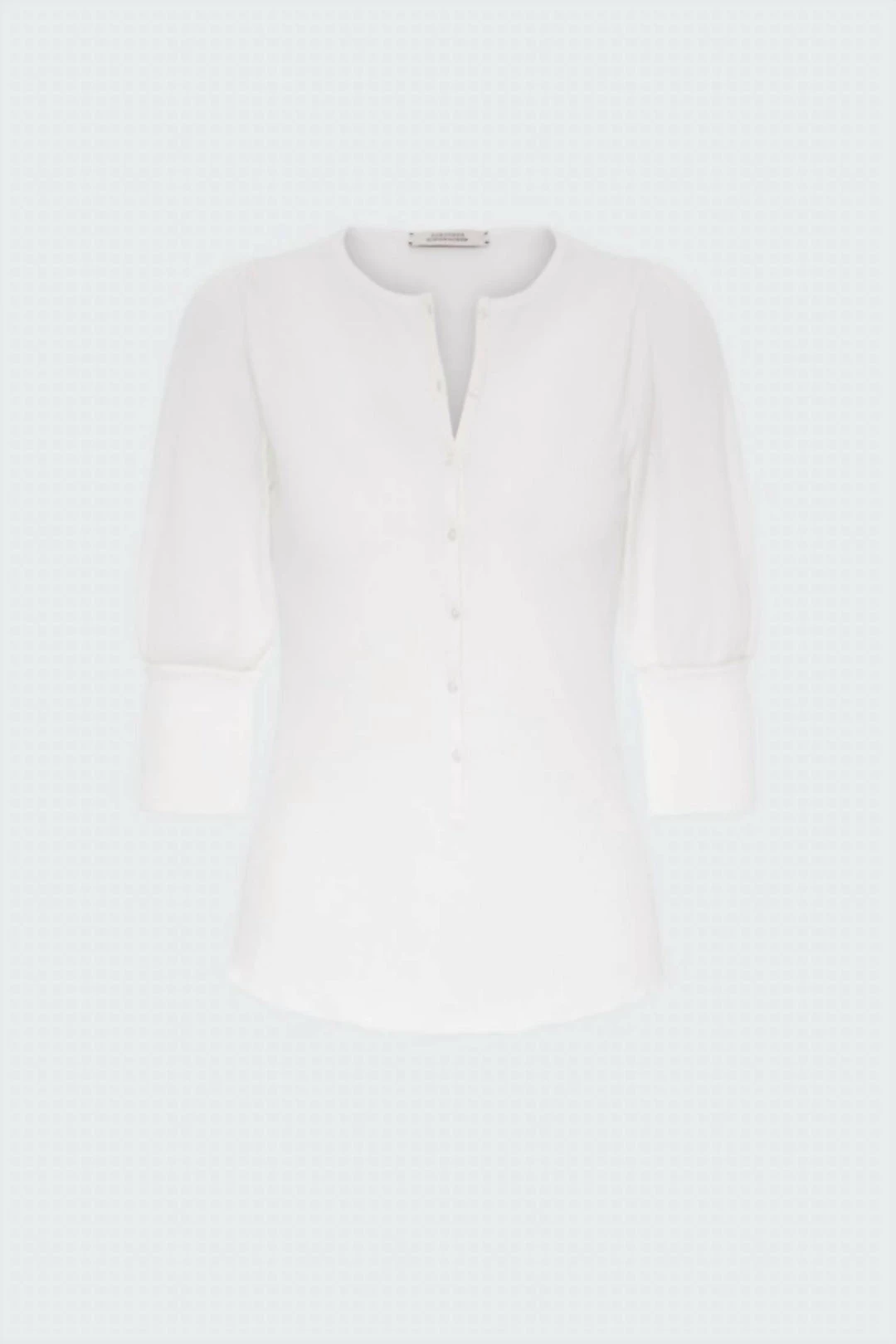 SIMPLE AND SOFT, THIS RIBBED HENLEY FROM DOROTHEE SCHUMACHER CHANNELS A MORE FEMININE LOOK. CRAFTED IN THE PERFECT MIX OF COTTON AND ELASTANE, IT FEATURES WIDE 3/4 LENGTH SLEEVES WITH FITTED, DOUBLE LAYER CUFFS, A ROUND NECK, FINE BUTTON PLACKET AND A ROLLED EDGE. ADD TO YOUR DAILY ENSEMBLE TODAY!