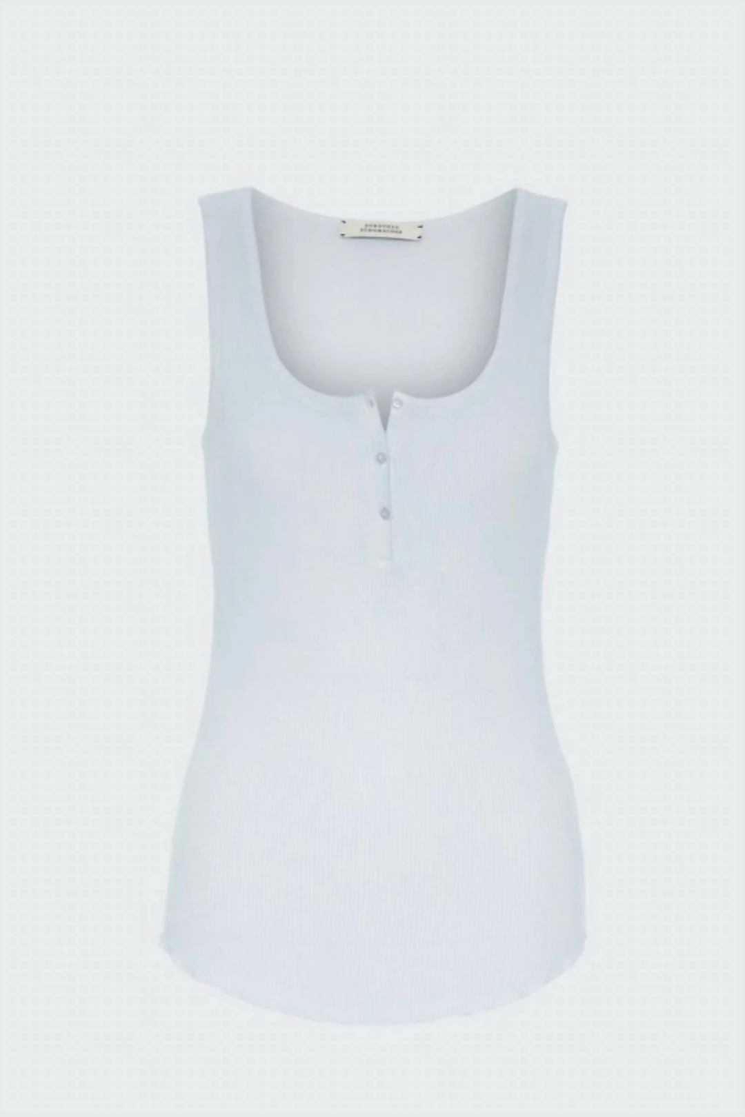 SIMPLE AND SOFT, THIS RIBBED HENLEY TANK TOP FROM DOROTHEE SCHUMACHER IS AN EVERYDAY LAYERING ESSENTIAL. CRAFTED IN THE PERFECT MIX OF COTTON AND ELASTANE, IT FEATURES THICK STRAPS, SCOOP NECKLINE, FINE BUTTON PLACKET IN TONAL COTTON TAPE AND A ROLLED HEM. ADD TO YOUR DAILY ENSEMBLE TODAY!