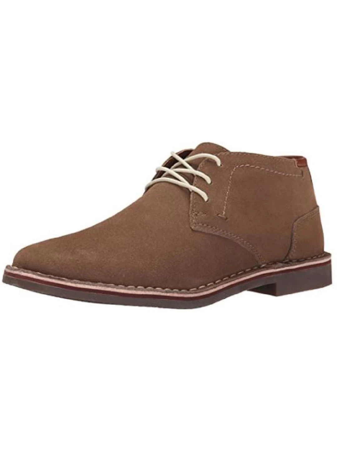Go from casual Friday to the weekend in comfort and style with the Desert Sun chukka boot by Kenneth Cole Reaction. This mid height boot is made with either pebbled leather or suede uppers. depending on the color way you choose, with textile lining and insole for added comfort. It is a lightweight boot featuring a cushioned insole for a comfortable wearing experience. It’s designed with tonal stitching and an accent striped midsole to make it stand out. Built with a durable rubber outsole for comfort and traction. The shaft measures 3.5″ in height.
