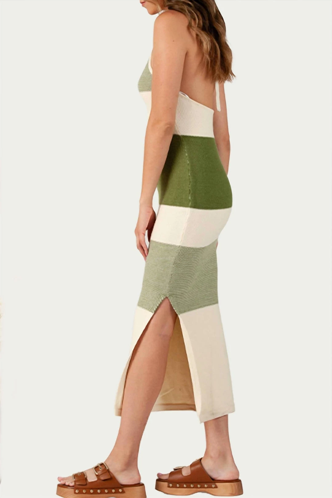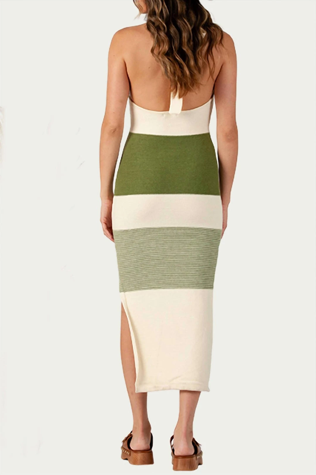 Best deal β€οΈ Lucca π© women Brizo Knitted Halterneck Midi π Dress in Ivory/Green π₯°