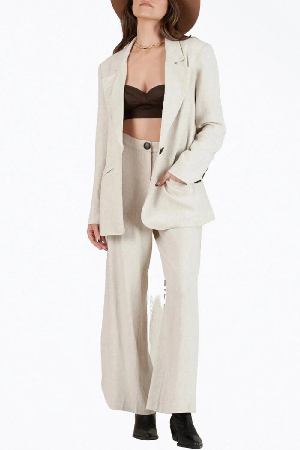 Cheap βοΈ Lucca π© women Oversized Single-Breasted Linen-Blend Blazer in Wheat π§¨