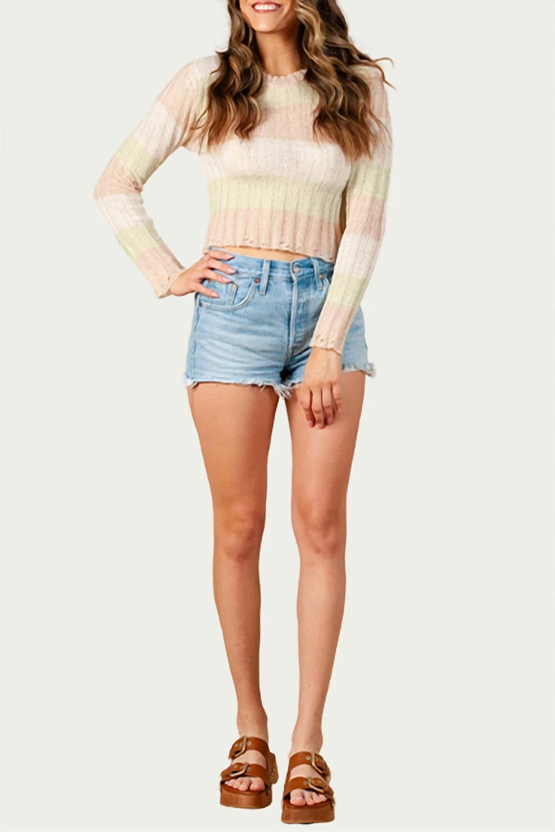 Deals π Lucca π© women Tulip Lghtweight Open-Knit Striped Sweater In Green Stripe π―