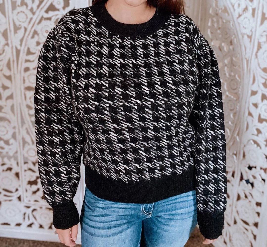 Promo π Lush π© women Houndstooth Check Sweater in Black π₯°